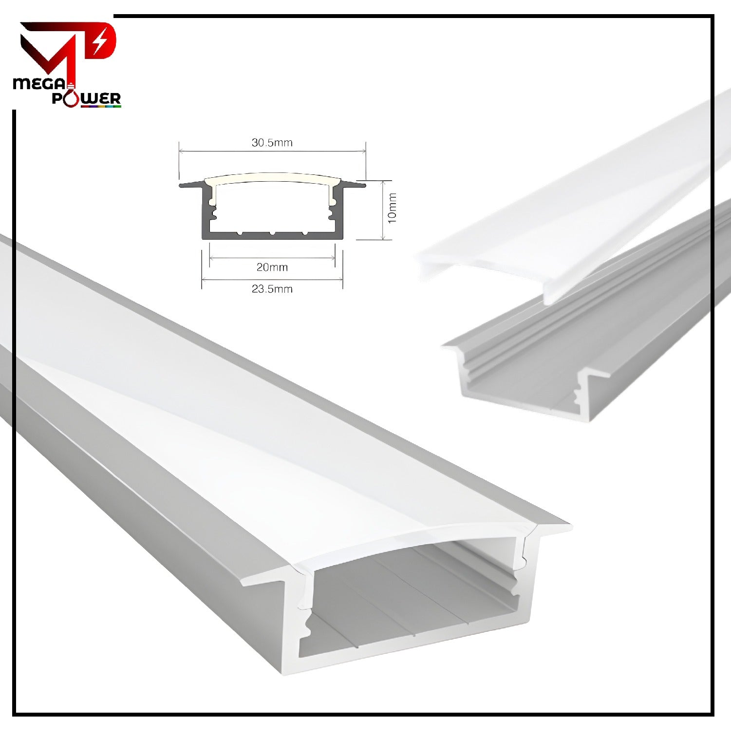Achieve a seamless, flush finish with the Profile Light 23mm Concealed Aluminum with Diffuser from Mega Power. This deep recessed aluminum profile is specifically designed for 23mm wide LED installations, supporting high-lumen or dual-row LED strips.